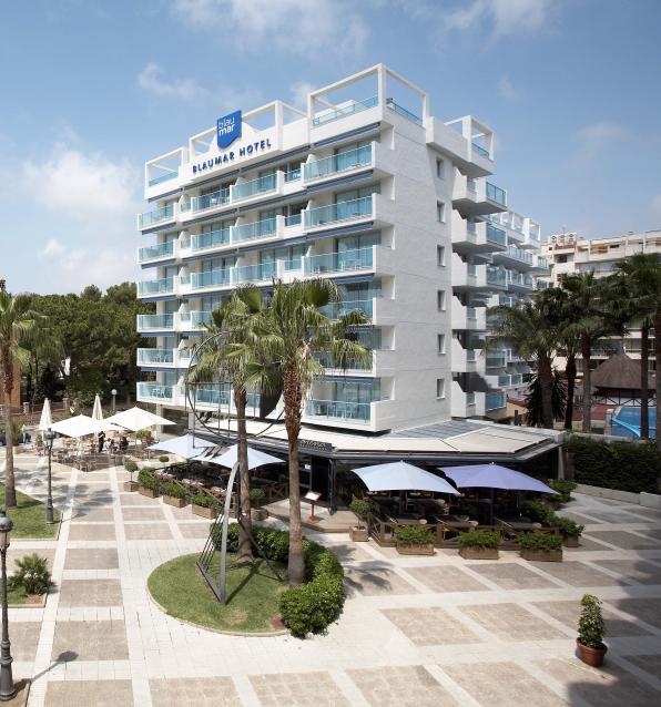 Hotels a Salou - Costa Daurada. Salou, Platja d'Europa. L'hotel Blaumar és l'únic situat al Passeig Jaume I, el passeig marítim de Salou, davant del mar i a la zona residencial de la capital de la Costa Daurada. Amb quatre estrelles, disposa d'habitacions tipus apartament, totalment renovades, per 2 o 4 persones i d'habitacions familiars, per a 2 o 5 persones, situades a l'edifici annex, pensades especialment per a famílies nombroses.