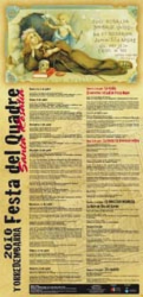 Torredembarra. Costa Daurada. Del 7 al 18 de juliol Torredembarra viurà la celebració de la Festa del Quadre que organitza el Patronat Municipal de Cultura. La presidenta de l’esmentat patronat, Rosa Maria Guasch, ha destacat que la festa estarà protagonitzada per les celebracions: els 35 anys dels Nois de la Torre, el X Aniversari del Ball de Pastorets i el naixement del Ball de Gitanes. Altres actes a tenir en compte són el ball amb l’orquestra Maravella i el concert jove la nit de vigília i la diada castellera del 18 de juliol amb Castellers de Vilafranca, Colla Jove Xiquets de Tarragona i Nois de la Torre, sense oblidar els actes més tradicionals com la processó del Quadre. Un altre aspecte que ha ressaltat la regidora és que malgrat els moments de crisi econòmica que comporten una contenció en la despesa, es manté el nivell d’altres anys amb una oferta festiva molt àmplia i per a tots els gustos.