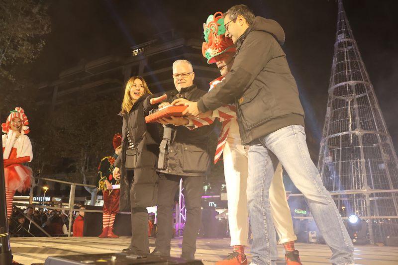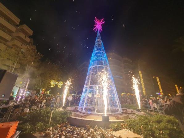 The mayor of Salou, Pere Granados, accompanied by several municipal authorities, has pressed the button that has turned on the lights that decorate the main streets of the municipality as well as the 10-meter-high Christmas tree that stands at the intersection of both avenues. The Christmas tree music, light and color show will be repeated every afternoon, until January 6.