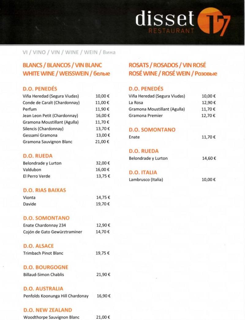 Las especialidades de la carta del Restaurante Disset son el pescado salvaje, la carne y los arroces, así como un amplio abanico de tapas y entrantes. Y es que la cocina del Disset se abastece principalmente del litoral de la Costa Dorada, en concreto de la Llotja de Cambrils, donde se encuentra un pescado fresco de contrastada calidad.