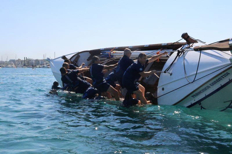 La exhibición en la playa ha despertado la curiosidad de los bañistas, que han podido comprobar como los remeros del bote lo han hecho girar hasta 8 veces, inicialmente, y hasta 15 veces en la segunda parte, sin que en ningún momento la embarcación se hundiera.