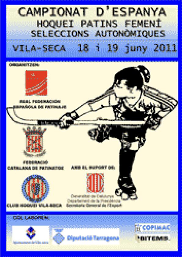 Vila-seca. Costa Dorada. El pabellón municipal de Vila-seca acogerá los próximos días 18 y 19 de junio de 2011 el cuarto Campeonato de España de Hockey Patines Femenino de Selecciones Autonómicas. Las cuatro selecciones sub-18 participantes disputarán una liguilla de seis partidos, todos contra todos. El sábado a las 11h jugará la selección de Cataluña y la de Galicia. A las 12.15h 'enfrentarán las selecciones de Madrid y Asturias y por la tarde será el turno de Cataluña-Asturias a las 19h y Madrid-Galicia a las 20.15h. Por último, el domingo por la mañana a las 11h jugarán Asturias y Galicia ya las 12.15h, Cataluña y Madrid. El Campeonato contará con la asistencia del presidente de la Real Federación Española de Patinaje, Carmelo Paniagua.