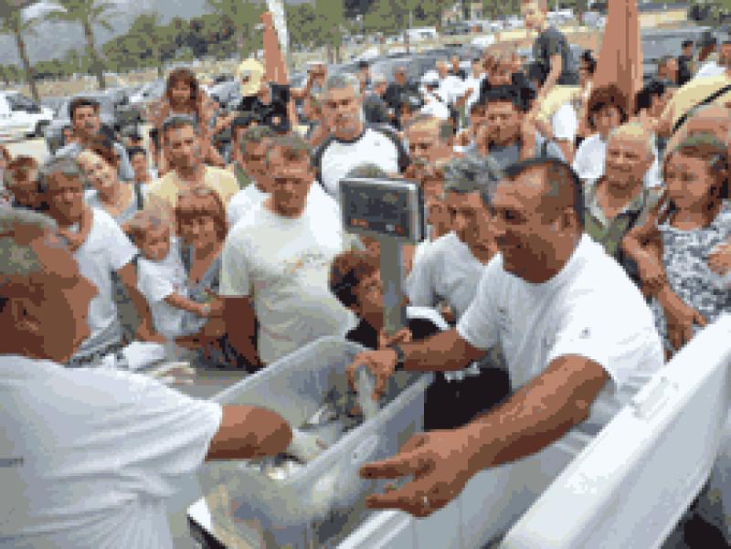 Vandellós. L'Hospitalet de l'Infant. Costa Dorada. Un total de 37 embarcaciones han participado este fin de semana, del 6 y 7 de agosto de 2011, en el 7 º Concurso Hermanos Guasch de Pesca al curricán, celebrado en aguas de L'Hospitalet de l'Infant. El primer clasificado ha sido Ildefonso López, patrón de la embarcación 'Mi morenita dos', que pescó un total de 39,63 kg. de pescado. Francesc Isern fue quien pescó la pieza más grande, de 6,42 kg. y fue también galardonado por esta captura. En la fotografía terminada en 72 se puede ver. La foto terminada en 80 es una foto de grupo de los participantes, y la 75 refleja uno de los momentos en que se realizó el pesaje. El dinero recaudado con la venta de todo el pescado capturado (un total de 220,92 kg sin contar la pieza más grande) se ha entregado a una ONG que ayuda directamente a las familias más necesitadas de L'Hospitalet de l'Infant.